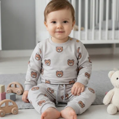 Komplet dresowy dla chłopca – Dres dla niemowlaka chłopca szary w misie