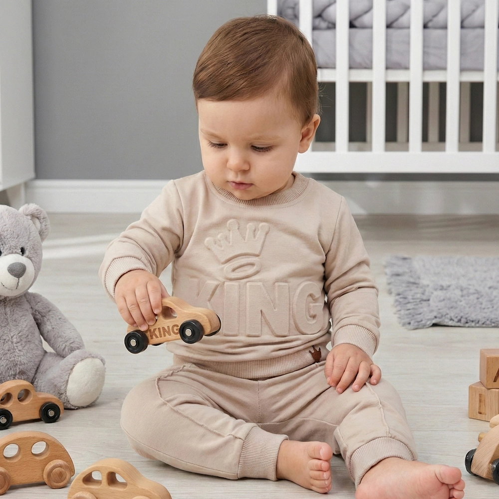 Uroczy, wygodny dresik niemowlęcy w kolorze beżowym, idealny zarówno dla dziewczynki jak i chłopca. Dresik dla niemowlaka wykonany jest ze 100% bawełny. Ubranka dla niemowlaka powinny być przede wszystkim wygodne i bezpieczne, czyli dokładnie takie jak proponowany przez nas dres dziecięcy.