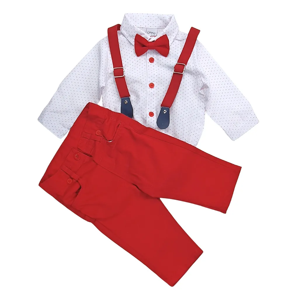 Nasz czerwony, elegancki zestaw świąteczny dla chłopca to idealne rozwiązanie na różne okazje, takie jak uroczyste kolacje, świąteczne spotkania rodzinne czy wigilijne przyjęcia. Świąteczny komplet dla chłopca doskonale podkreśli wyjątkowość tych okazji i sprawi, że twój chłopiec będzie wyglądał niezwykle stylowo. To idealna stylizacja świąteczna dla chłopca.