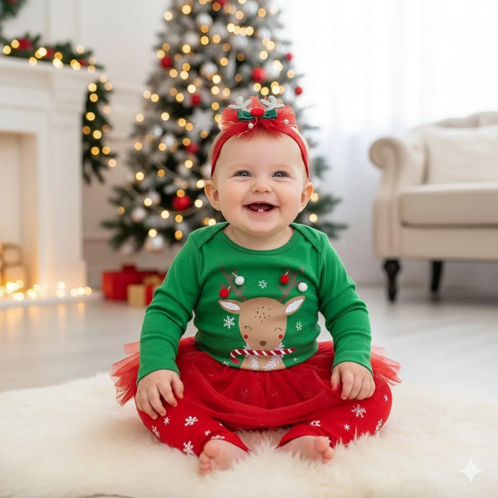 Zamów już dziś urocze niemowlęce body w komplecie ze spodenkami i opaską i ciesz się wyjątkowym strojem dla Twojego malucha na święta. Ten zestaw świątecznych ubranek to doskonały pomysł na prezent dla niemowlaka.