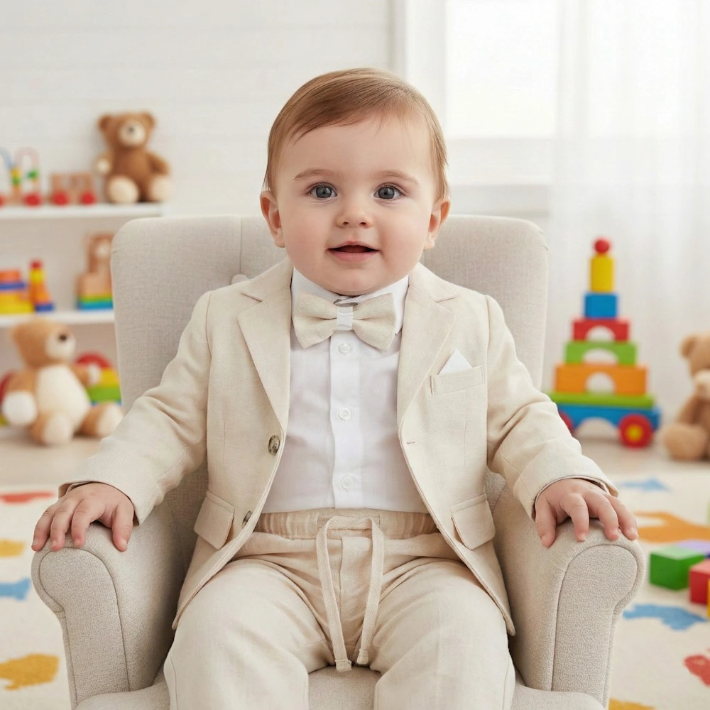 Jeśli pragniesz, aby Twój syn wyglądał uroczo i stylowo w dniu jego Chrztu lub podczas innych ważnych okazji, nasz garnitur niemowlęcy jest idealnym wyborem. Niezależnie od okazji nasze elegancki komplet niemowlęcy na Chrzest sprawi, że Twój maluszek będzie wyglądać olśniewająco i niezapomnianie.