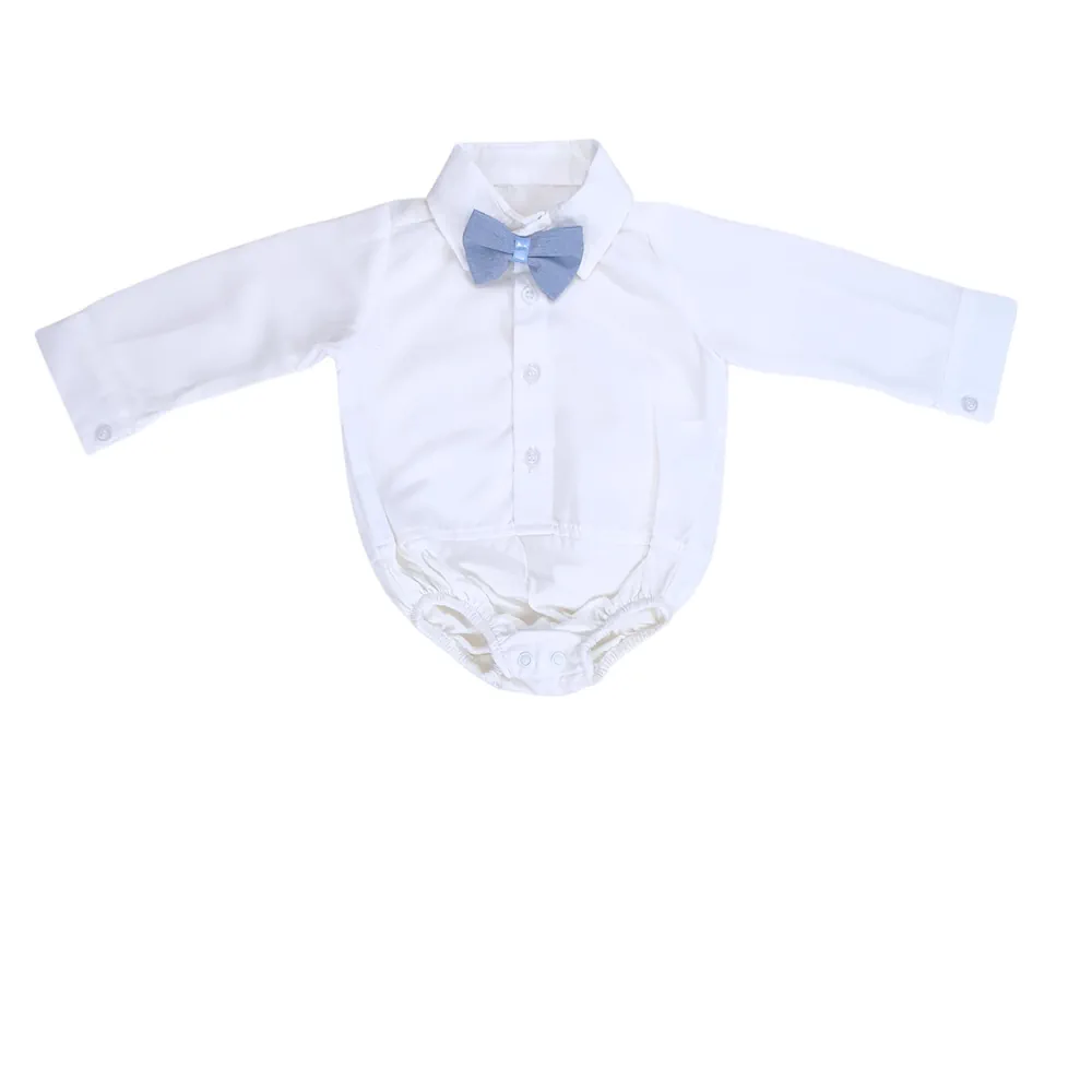 - koszulobody niemowlęce z długim rękawem – eleganckie body z kołnierzem dodaje charakteru i uroku całemu zestawowi. Zapewnia przyjemne uczucie noszenia. Długie rękawy zapewniają ciepło i ochronę przed chłodem, a muszka dodaje niepowtarzalnego, uroczego akcentu.