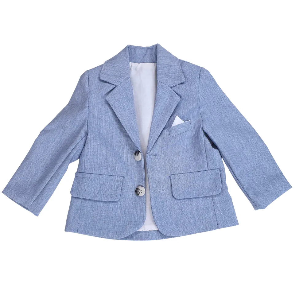 - marynarka niemowlęca – Materiał jest bardzo miękki, dzięki czemu marynarka zapewnia komfort i swobodę ruchów dla Twojego maluszka. Z przodu posiada guziki, które dodają uroku i pozwalają na łatwe zakładanie i zdejmowanie.