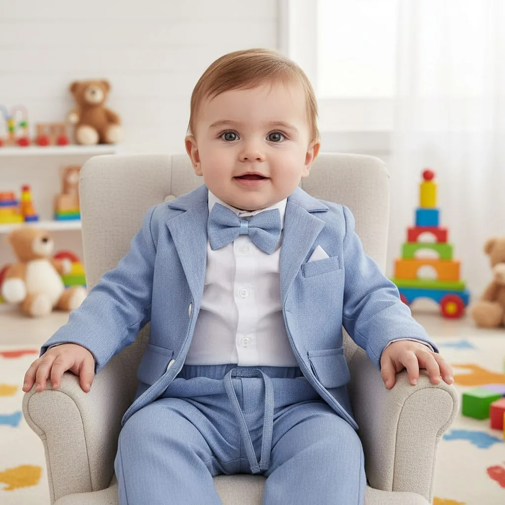 Jeśli pragniesz, aby Twój syn wyglądał uroczo i stylowo w dniu jego Chrztu lub podczas innych ważnych okazji, nasz garnitur niemowlęcy jest idealnym wyborem. Niezależnie od okazji nasze elegancki komplet niemowlęcy na Chrzest sprawi, że Twój maluszek będzie wyglądać olśniewająco i niezapomnianie.