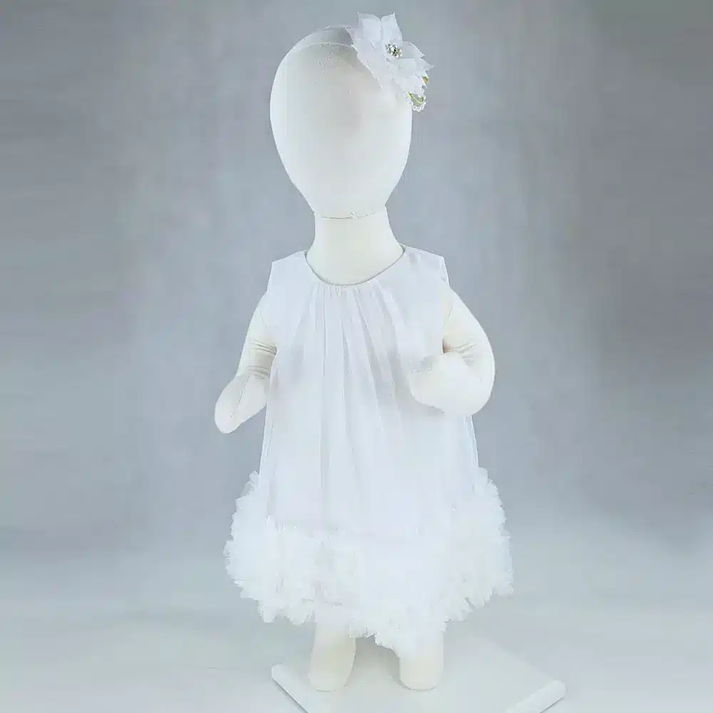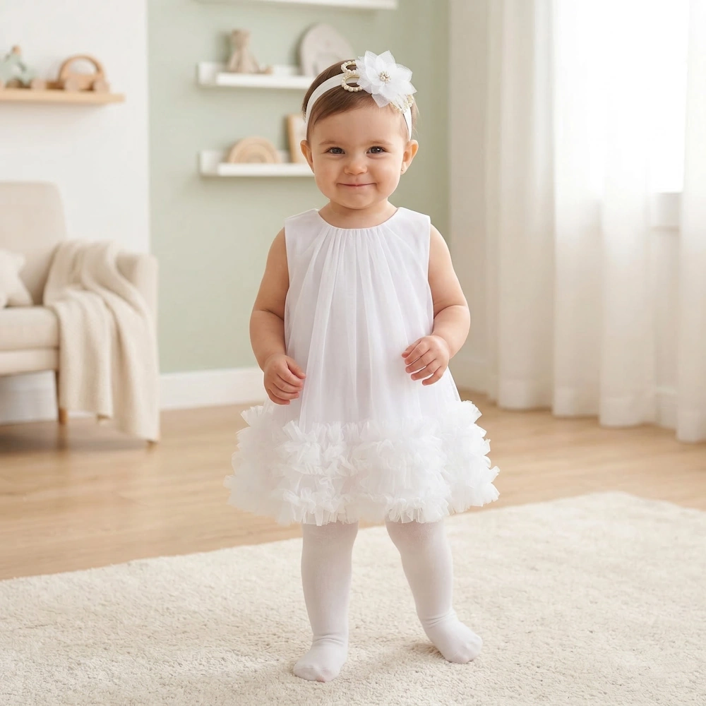 Ta urocza biała sukienka tiulowa dla dziewczynki to idealny wybór na wyjątkowe okazje. Delikatny biały kolor i zwiewny tiul sprawiają, że każda mała dama będzie wyglądała jak księżniczka. Dzięki wyjątkowemu designowi, ta idealna sukienka przyciąga wzrok i zachwyca swoją elegancją.