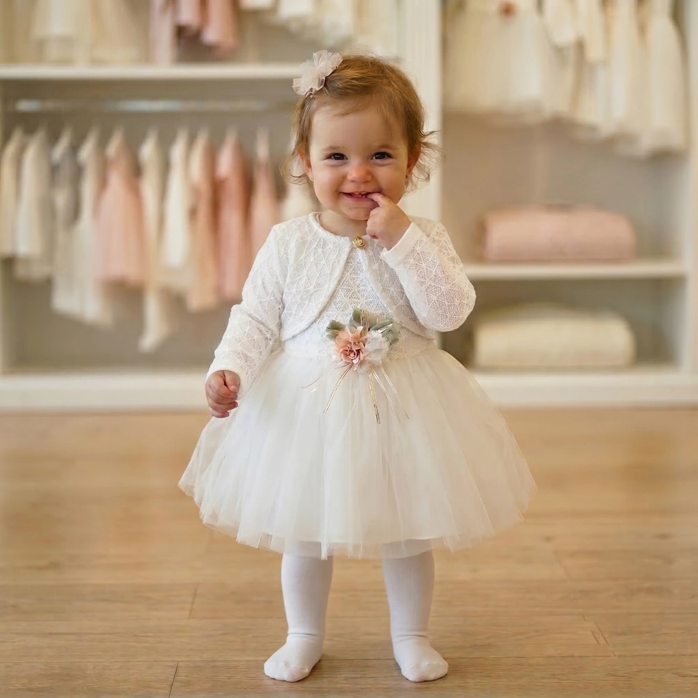 Sukienka doskonale sprawdzi się na uroczystość Chrztu świętego, dzięki długim rękawom Twoje dziecko będzie czuło się komfortowo nawet w chłodne dni. Miękka i lekka tkanina nie tylko zapewnia wygodę, ale także pozostaje przyjemna dla skóry przez całą ceremonię.